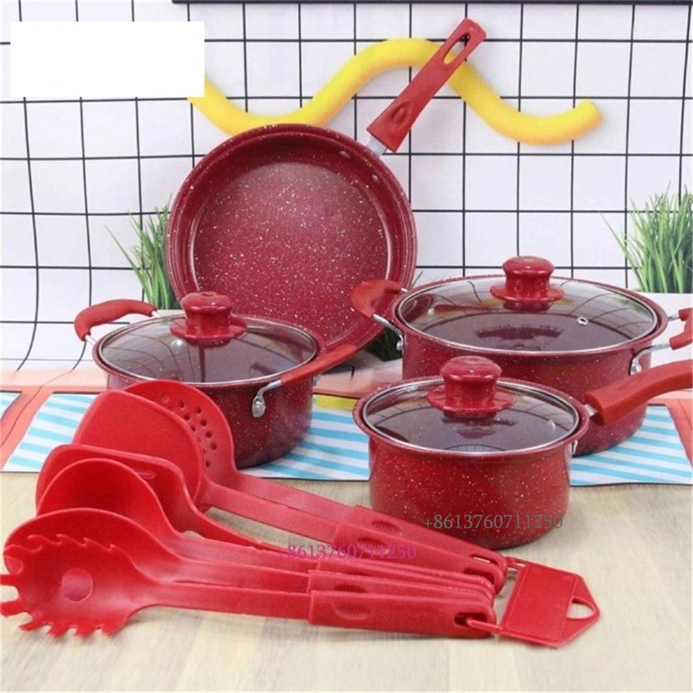 Good Quality 13Pcs Gift Set Red Suit Pot Non-Stick Frying Pan,Soup Pan,Milk Pan Cooking Non Stick Set